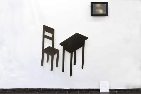 o.T., 2011 Papierschnitt, Monitor, Text - Installationsansicht